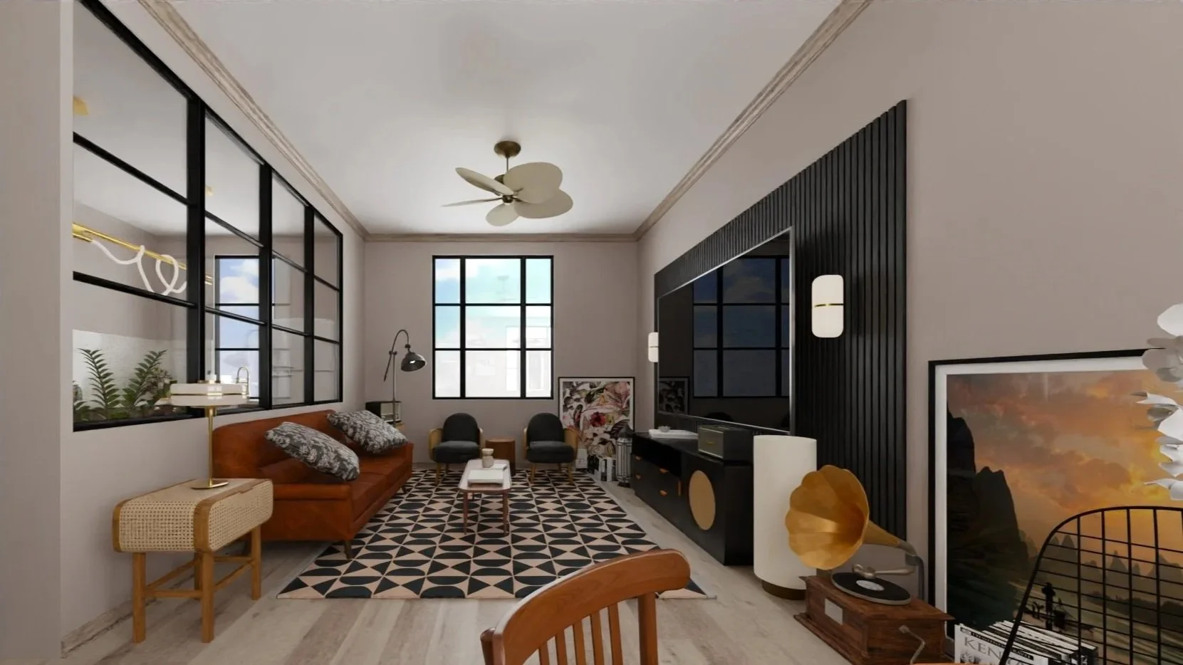Flooring: Wide-plank hardwood in ebony or deep walnut, stained concrete with a satin sealer, or distressed reclaimed boards. Layer plush area rugs—oriental rugs in faded jewel palettes or low-pile kilims—to introduce warmth and pattern.